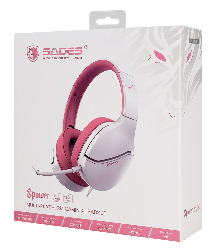 SADES gaming headset Spower, 3.5mm σύνδεση, 40mm, multi-platform, ροζ/λευκό