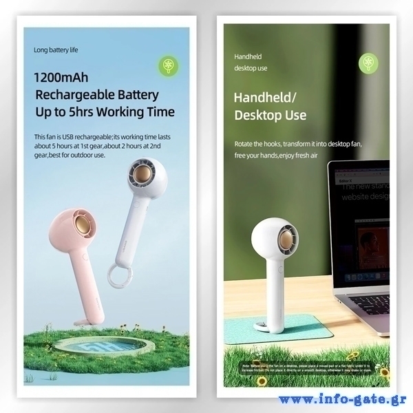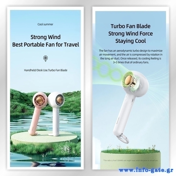 Μίνι φορητός ανεμιστήρας της Usams με 2 επίπεδα ταχύτητας του αέρα, που σας επιτρέπουν την προσαρμογή της ροής της ταχύτητας του αέρα ανάλογα με τις ανάγκες σας