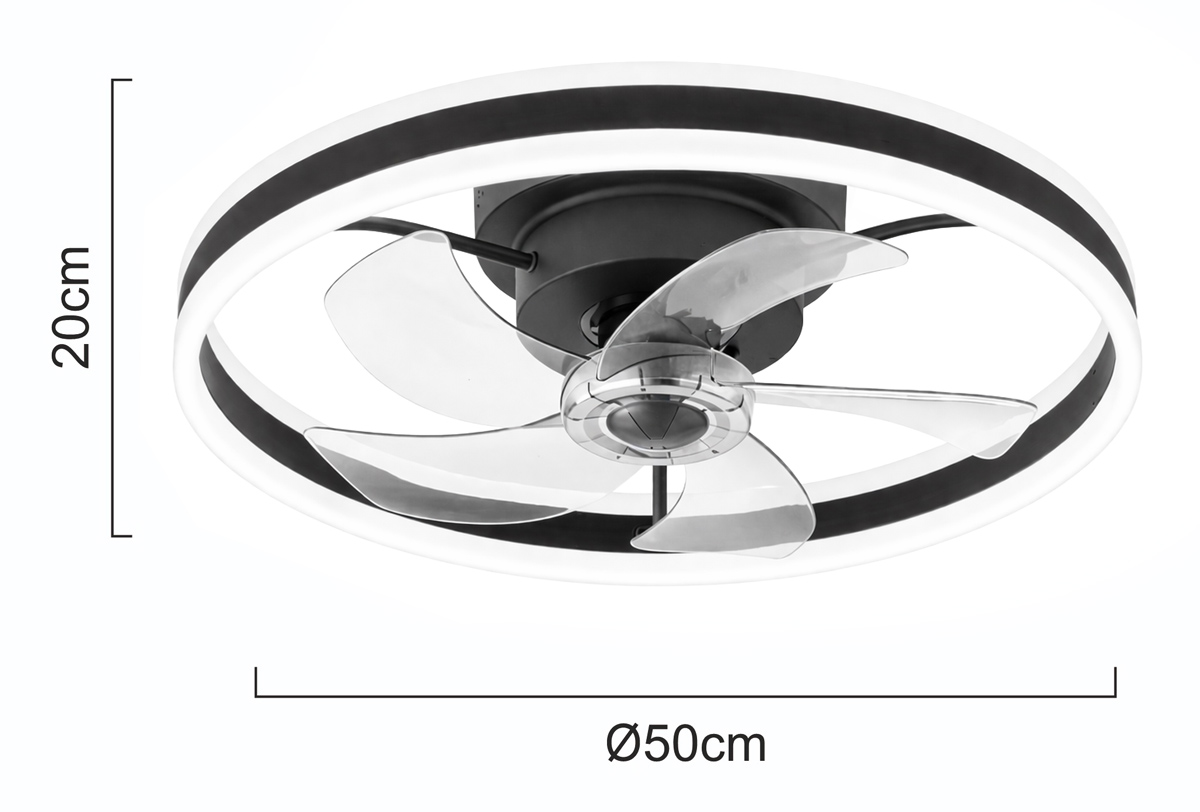 Συνοδεύεται από τηλεχειριστήριο για τον απομακρυσμένο έλεγχο του ανεμιστήρα και του φωτισμού.