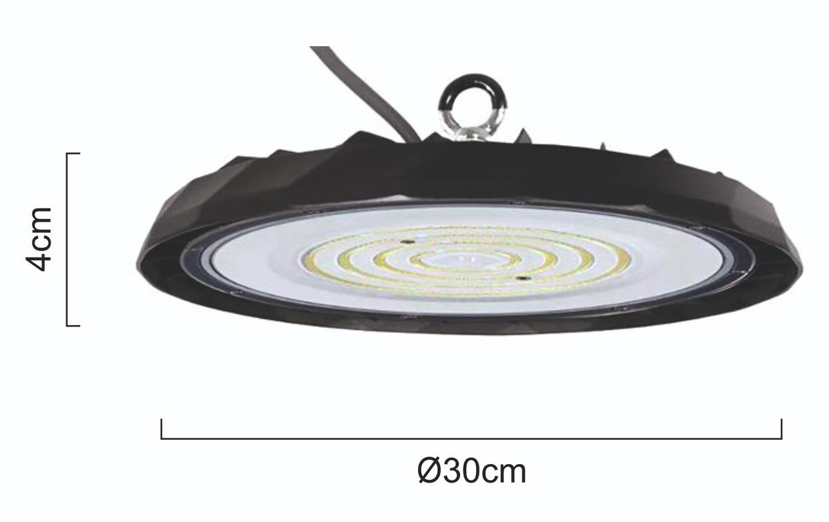 POWERTECH LED φωτιστικό καμπάνα PT-1557, 100W, 6500K, Φ30x4cm, IP65, μαύρο
