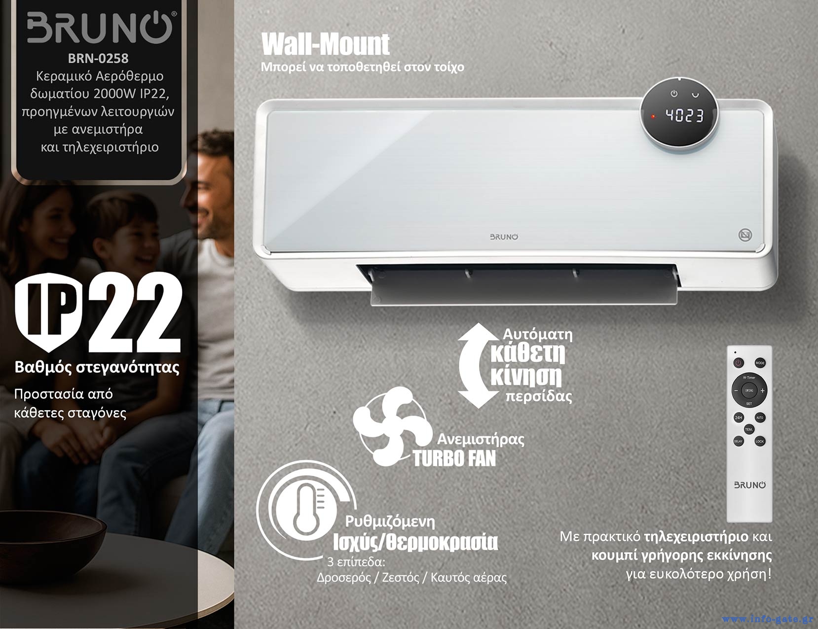 BRUNO BRN-0258 Κεραμικό Αερόθερμο 2000W IP22, προηγμένων λειτουργιών με ανεμιστήρα