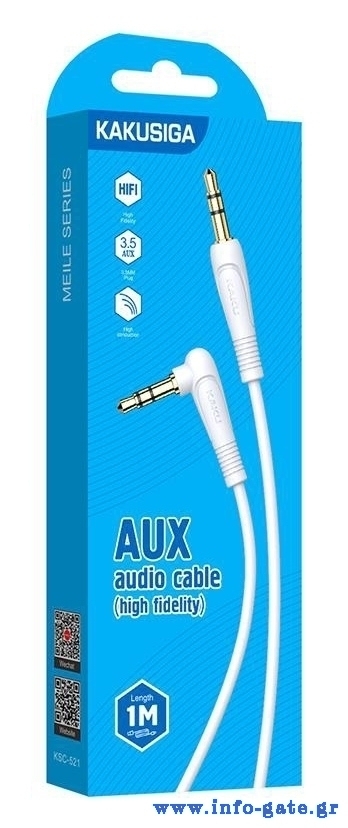 KAKUSIGA καλώδιο ήχου 3.5mm KSC-521, AUX, 90°, HiFi 1m, λευκό