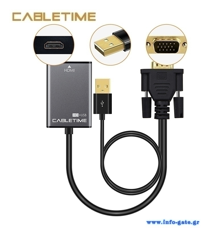 CABLETIME αντάπτορας HDMI σε VGA CT-VGAH με USB, 1080p, 0.15m, μαύρος