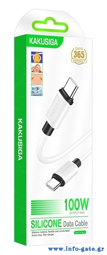 KAKUSIGA καλώδιο USB-C σε USB-C KSC-998, σιλικόνης, 100W, 480Mbps, 1m, λευκό