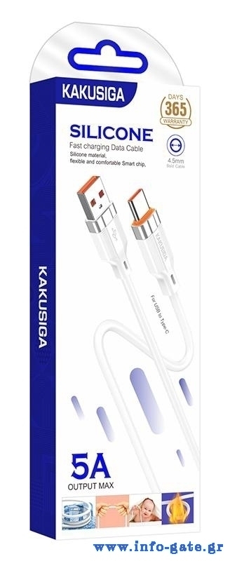 KAKUSIGA καλώδιο USB-C σε USB KSC-995, σιλικόνης, 5A, 480Mbps, 1m, λευκό