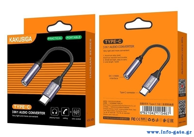 Aντάπτορας της KAKUSIGA ιδανικός για την σύνδεση ακουστικών με 3.5mm διεπαφή, μέσω θύρας USB-C.