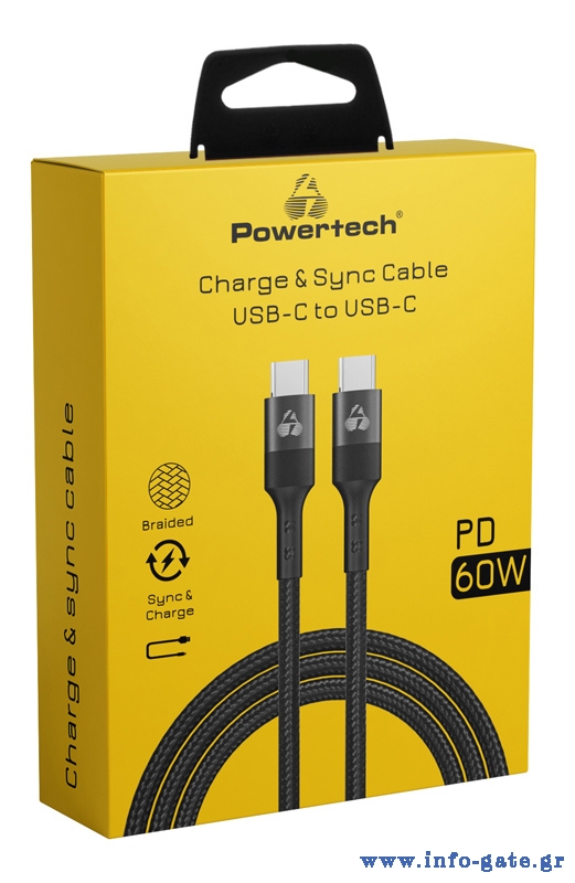 POWERTECH καλώδιο USB-C σε USB-C PTR-0168, PD 60W, copper, 1.5m, μαύρο