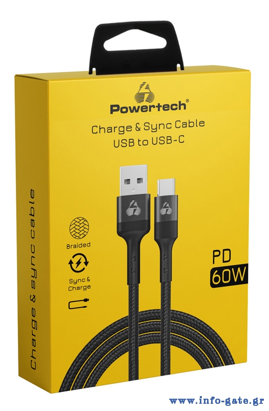 POWERTECH καλώδιο USB-C σε USB PTR-0169, PD 60W, copper, 1.5m, μαύρο