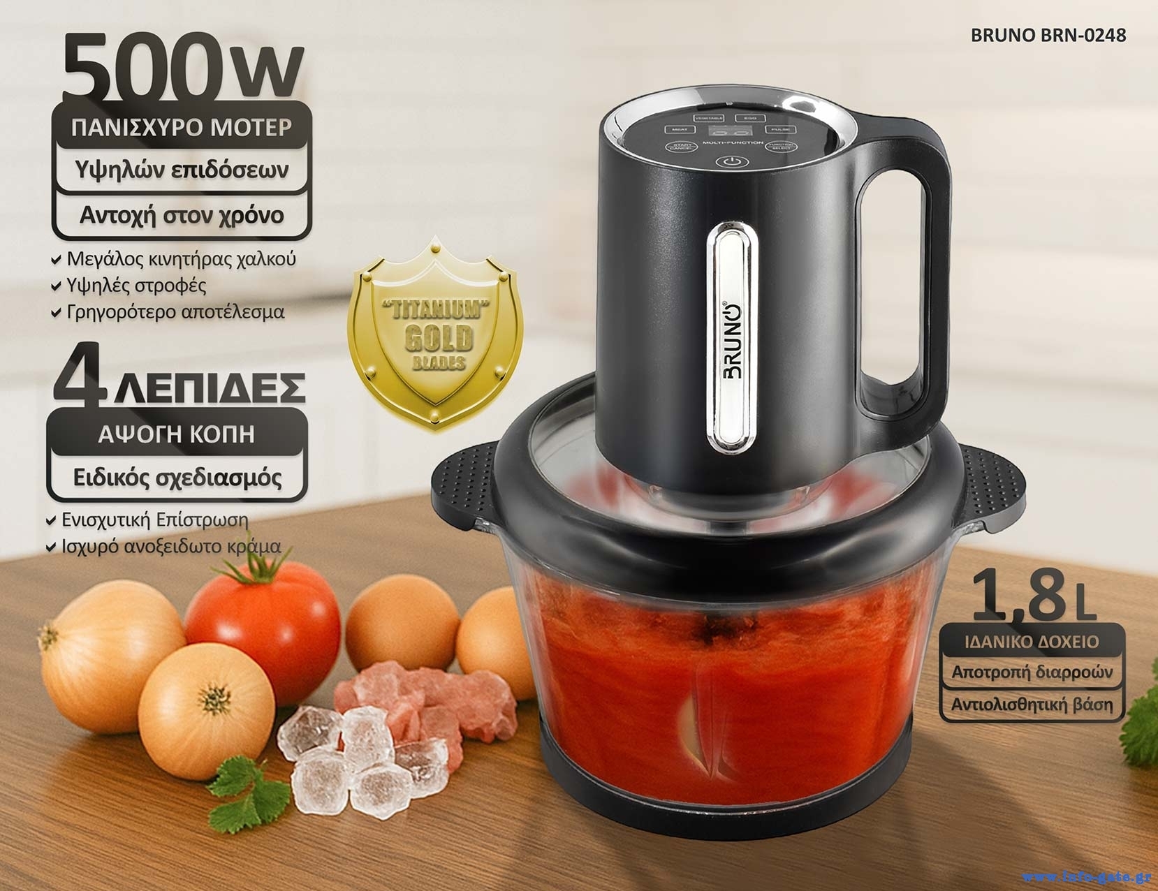 BRUNO Πολυκόπτης προηγμένων λειτουργιών, ψηφιακός BRN-0248, 500W, 1.8L, 4 λεπίδες, μαύρος