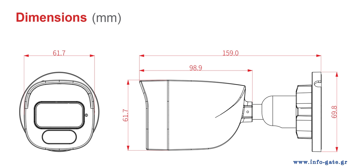 -Dimension: 69.8(W) x 69.8(H) x 159(D)mm