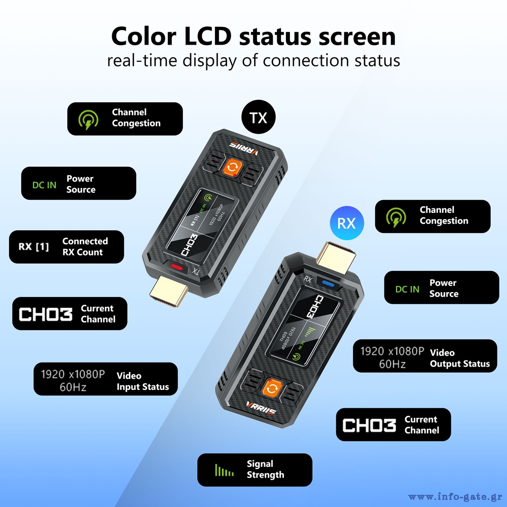 Αποτελείται από πομπό και δέκτη, και επιτρέπει την ασύρματη μετάδοση εικόνας από PC, laptop, κάμερα, TV Box, κονσόλες παιχνιδιών και άλλες HDMI συσκευές σε τηλεόραση, οθόνη ή προτζέκτορα.