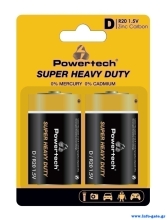 POWERTECH μπαταρίες Zinc Carbon Super Heavy Duty PT-1222, R20 1.5V, 2τμχ