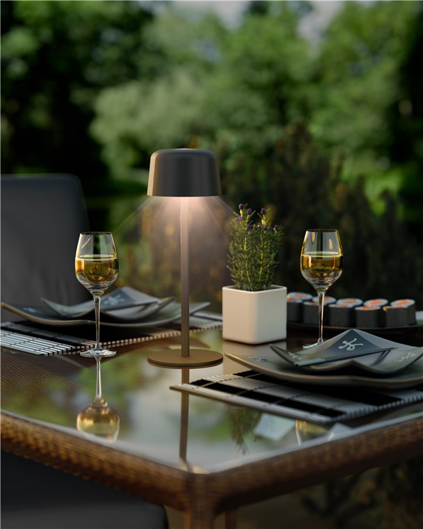 Με κομψό και μοντέρνο σχεδιασμό, το επιτραπέζιο φωτιστικό της Goobay προσφέρει ζεστό και ευχάριστο φωτισμό, ιδανικό τόσο για εσωτερικούς όσο και για εξωτερικούς χώρους. Η θερμοκρασία φωτός 3000K δημιουργεί χαλαρωτική ατμόσφαιρα, ενώ η ρυθμιζόμενη ένταση σας επιτρέπει να προσαρμόζετε το φως ανάλογα με τις ανάγκες σας.