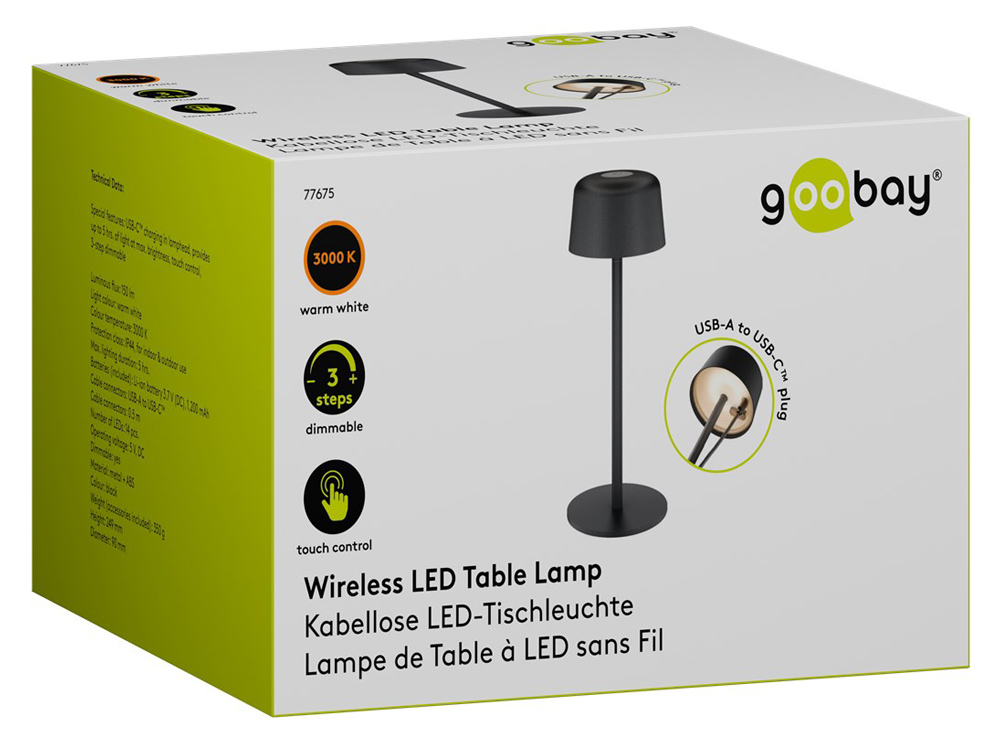 GOOBAY επιτραπέζιο φωτιστικό 77675, 3000K, dimmable, επαναφορτιζόμενο, μαύρο