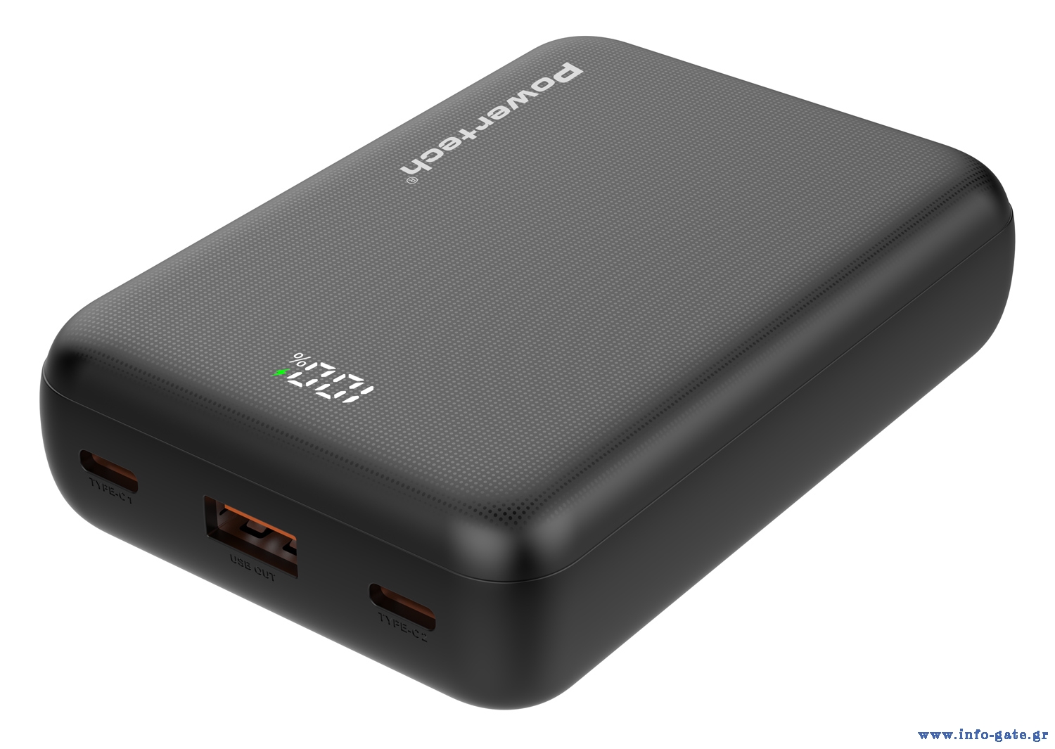 POWERTECH power bank PT-1503 με οθόνη, 20000mah, 22.5W, μαύρο