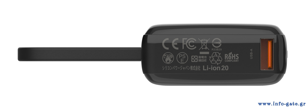 Διαθέτει 2x θύρες εξόδου (USB & USB-C) και ενσωματωμένο καλώδιο εξόδου USB-C που υποστηρίζουν συνολική απόδοση φόρτισης έως 20W.