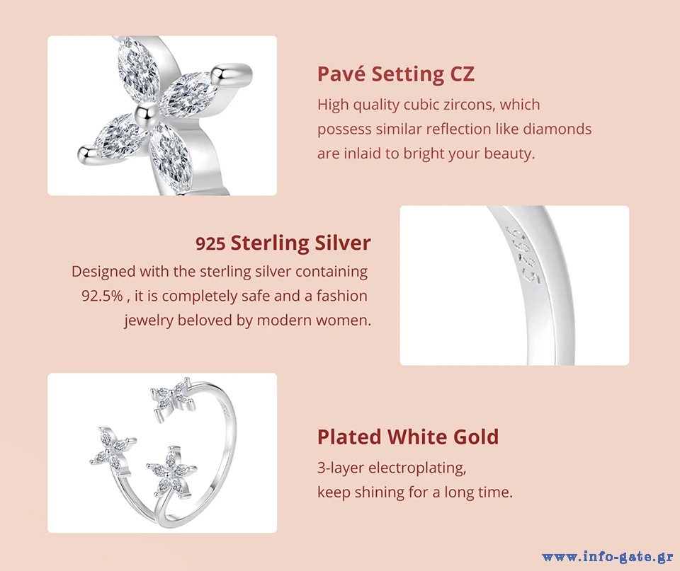 Κομψό δαχτυλίδι Bamoer, κατασκευασμένο από ασήμι 925 και διακοσμημένο με αστραφτερή κυβική ζιρκόνια.