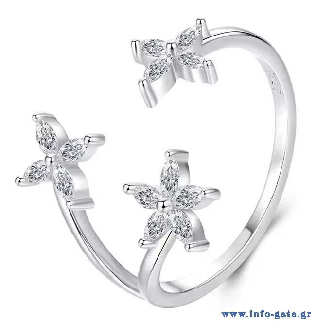 BAMOER δαχτυλίδι BSR710-E με κυβική ζιρκόνια, ανοιγόμενο, ασήμι 925, ασημί