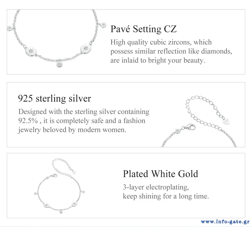 Κατασκευάζεται από ασήμι 925 με φινίρισμα από επιχρυσωμένο λευκόχρυσο και διαθέτει κρίκους αυξομείωσης ώστε να το ρυθμίσετε στην επιθυμητή θέση.