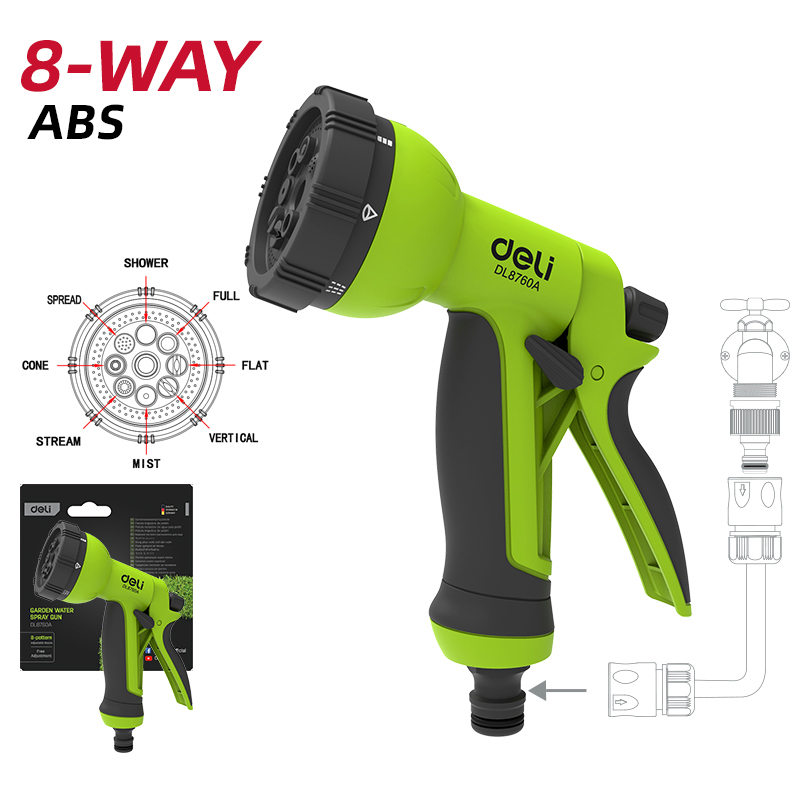 DELI πιστόλι νερού DL8760A με 8 λειτουργίες ψεκασμού, 3/4"