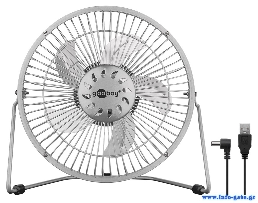 Αποτελεσματικός, αθόρυβος, φορητός επιτραπέζιος ανεμιστήρας με τροφοδοσία USB. Μπορεί να συνδεθεί απευθείας στη θύρα USB του υπολογιστή ή ακόμη και σε power bank. Οι μεταλλικές λεπίδες του ανεμιστήρα παρέχουν υψηλή ανθεκτικότητα και αντοχή σε φθορά. Έχει ενσωματωμένο διακόπτη ON/OFF, ενώ διαθέτει ρυθμιστή γωνίας που σας επιτρέπει να το προσαρμόσετε απόλυτα στις ανάγκες σας. Η βάση του ανεμιστήρα είναι εξοπλισμένη με αντικραδασμικά μαξιλαράκια για μέγιστη σταθερότητα.