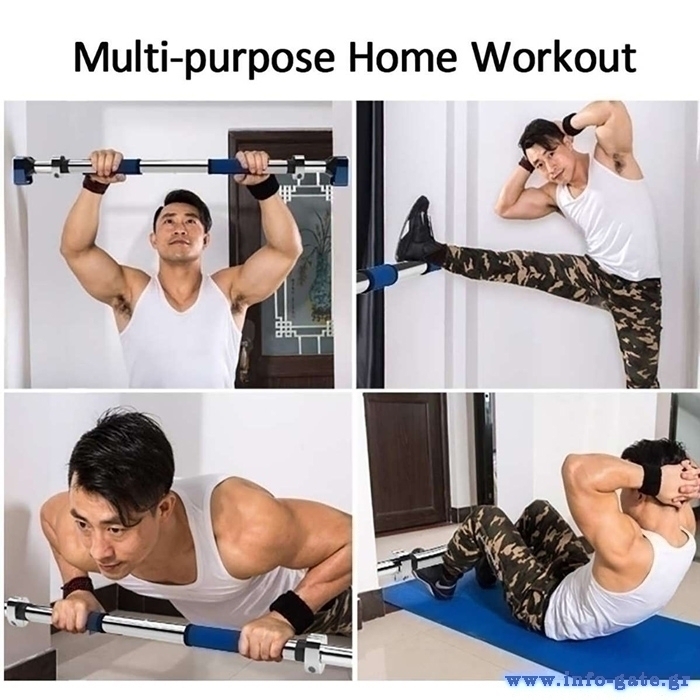 Μονόζυγο πόρτας με ρυθμιζόμενο μήκος 70-90cm και αντοχή βάρους έως και 500kg. Είναι κατασκευασμένο από υψηλής ποιότητας υλικά ενώ διαθέτει και λαβές με αντιολισθητικά σφουγγαράκια ώστε να μην γλιστράνε τα χεριά κατά την διάρκεια της γυμναστικής. Η τοποθέτηση της γίνεται εύκολα χωρίς την χρήση εργαλείων επιτρέποντας σας να γυμνάσετε όλα τα μέρη του σώματος σας εύκολα από το σπίτι. Στην συσκευασία συμπεριλαμβάνεται 1 σετ γάντια γυμναστικής και 1 κλειδί τύπου Allen.