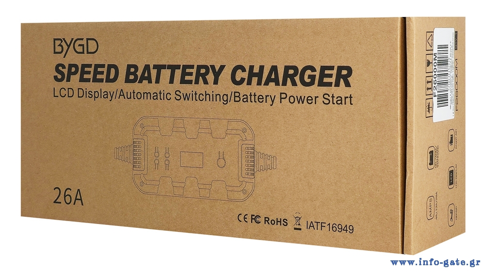 Ο BYGD F26000M είναι ένας αξιόπιστος και έξυπνος φορτιστής–συντηρητής μπαταρίας, ιδανικός για αυτοκίνητα, μοτοσυκλέτες και άλλα οχήματα με μπαταρίες 6V, 12V και 24V.