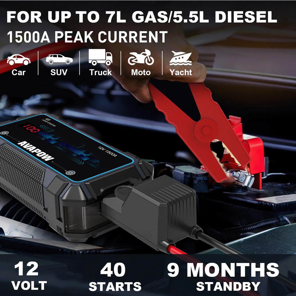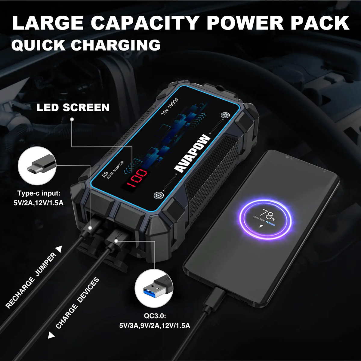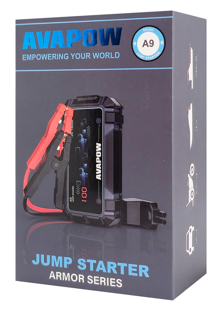 AVAPOW εκκινητής μπαταρίας αυτοκινήτου A9 με φακό, 12V/2500A, 8000mAh