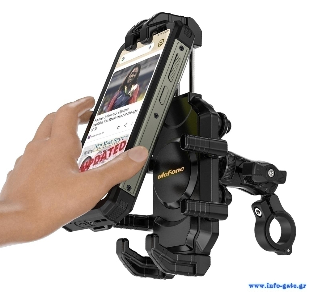Στιβαρή βάση για smartphone της Ulefone με στήριξη σε τιμόνι ποδηλάτου ή μηχανής. Είναι κατασκευασμένη από ανθεκτικό υλικό ενώ η επιφάνεια στις άκρες της βάσης όπου στηρίζεται η συσκευή αλλά και η βάση στήριξης στο τιμόνι έχει αντιολισθητική και μαλακή επίστρωση από σιλικόνη ώστε να βελτιώνεται το επίπεδο συγκράτησης, αποτρέποντας τις γρατσουνιές από την χρήση.