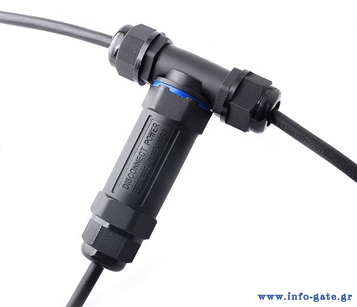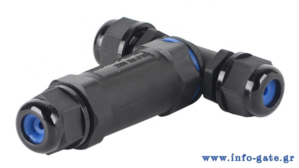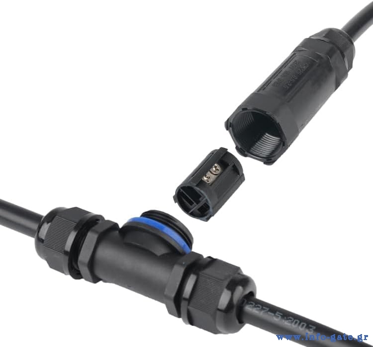 Αδιάβροχος σύνδεσμος καλωδίων τροφοδοσίας της POWERTECH, ιδανικός για εγκαταστάσεις σε εξωτερικούς χώρους. Διαθέτει αδιαβροχοποίηση επιπέδου IP68, προστατεύοντας την συνδεσμολογία από σκόνη και νερό.