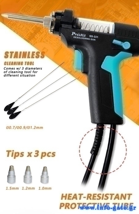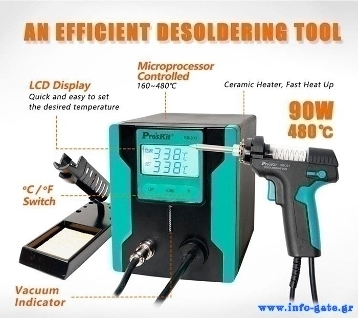 Ο σταθμός αποκόλλησης SS-331B της PROSKIT είναι ένα πρακτικό εργαλείο για εργασίες αποκόλλησης με ισχύ 140W και ρυθμιζόμενη θερμοκρασία από 160 έως 480 °C.