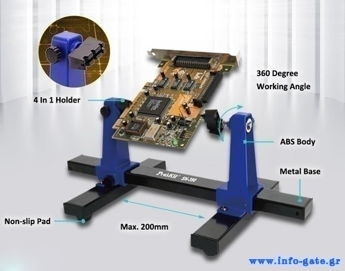 Βάση της PROSKIT για την στερέωση ηλεκτρονικών εξαρτημάτων όπως πλακέτες, κατάλληλη για εργασίες συγκόλλησης.