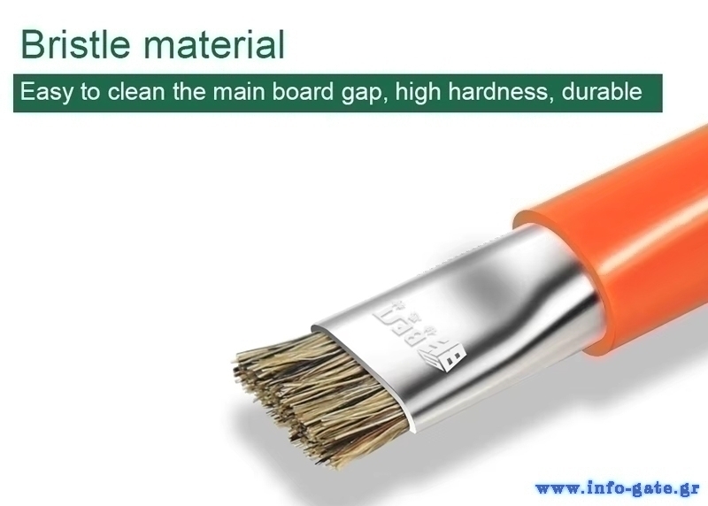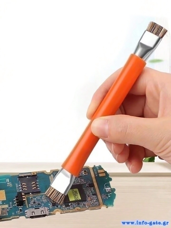 Αντιστατική βούρτσα για των καθαρισμό PCB ή άλλων ευαίσθητων υλικών. Διαθέτει διπλή κεφαλή και απομακρύνει αποτελεσματικά την σκόνη και την βρωμιά χωρίς να πληγώνει την επιφάνεια καθαρισμού. Δεν δημιουργεί στατικό ηλεκτρισμό και αποτελεί απαραίτητο εργαλείο για κάθε επισκευή ή συντήρηση ηλεκτρονικών συσκευών.