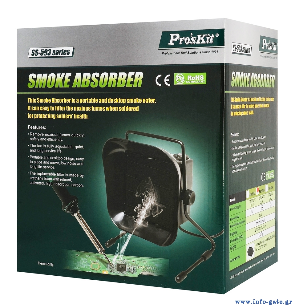 PROSKIT σταθμός απορρόφησης καπνού SS-593B με φίλτρο άνθρακα, 23W