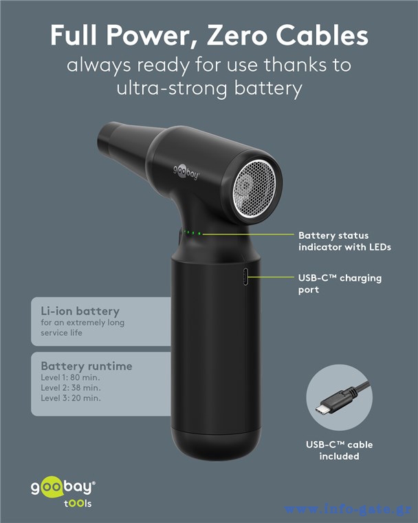GOOBAY ηλεκτρικό air duster 77830, 100W, 6000mAh, μαύρο
