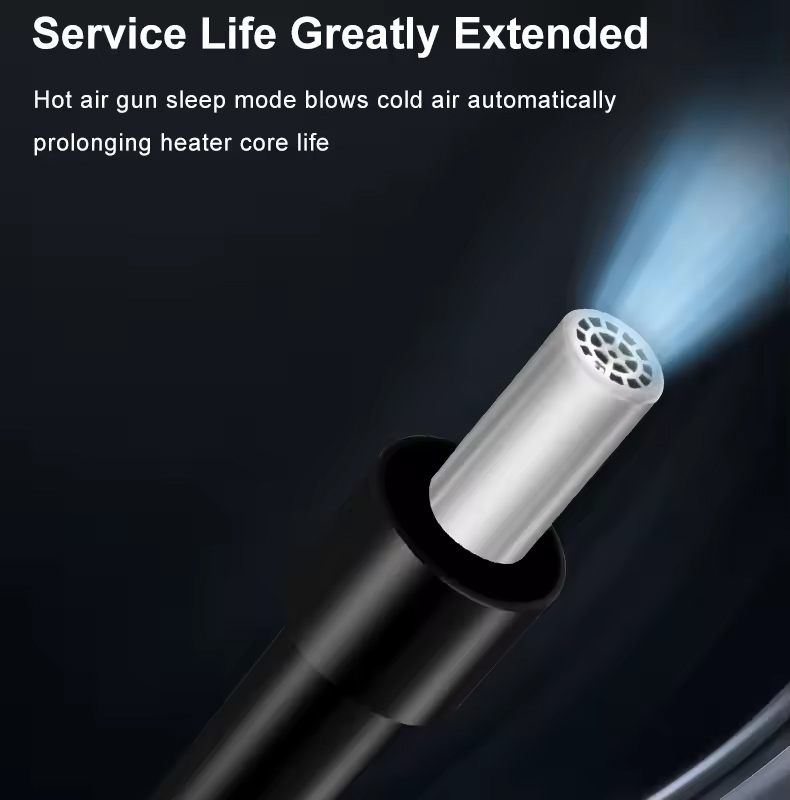 Εξοπλίζεται με πιστόλι θερμού αέρα και υποστηρίζει ρύθμιση της θερμοκρασίας, η οποία κυμαίνεται από 100°C έως 500°C.