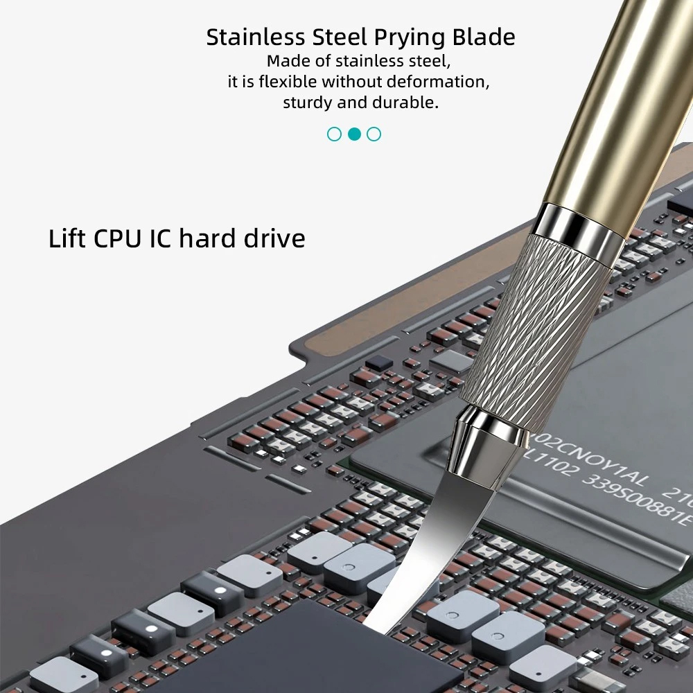 Πολυεργαλείο της BEST, ιδανικό για εργασίες επισκευής κινητών και ηλεκτρονικών συσκευών, όπως καθαρισμό, αφαίρεση κόλλας και λεπτομερείς παρεμβάσεις σε motherboard και chip. Ο συνδυασμός εργαλείων προσφέρει ευελιξία και ακρίβεια σε επαγγελματικές και απαιτητικές εφαρμογές.