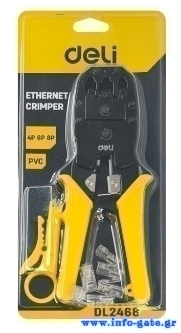 DELI εργαλείο πτύχωσης με απογυμνωτή καλωδίων RJ45/12/11 DL2468, 8+6+4P