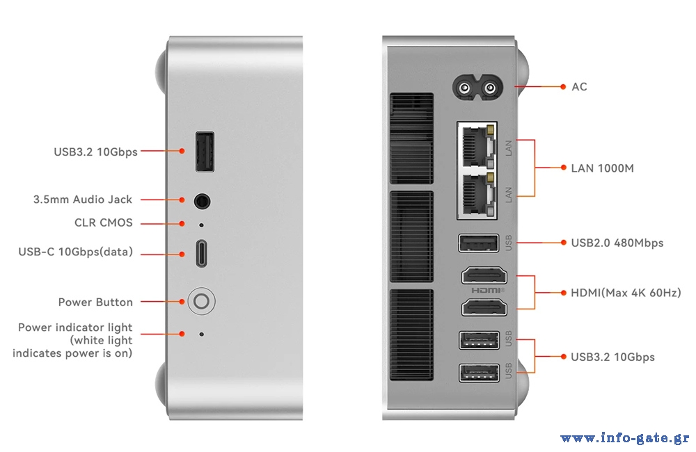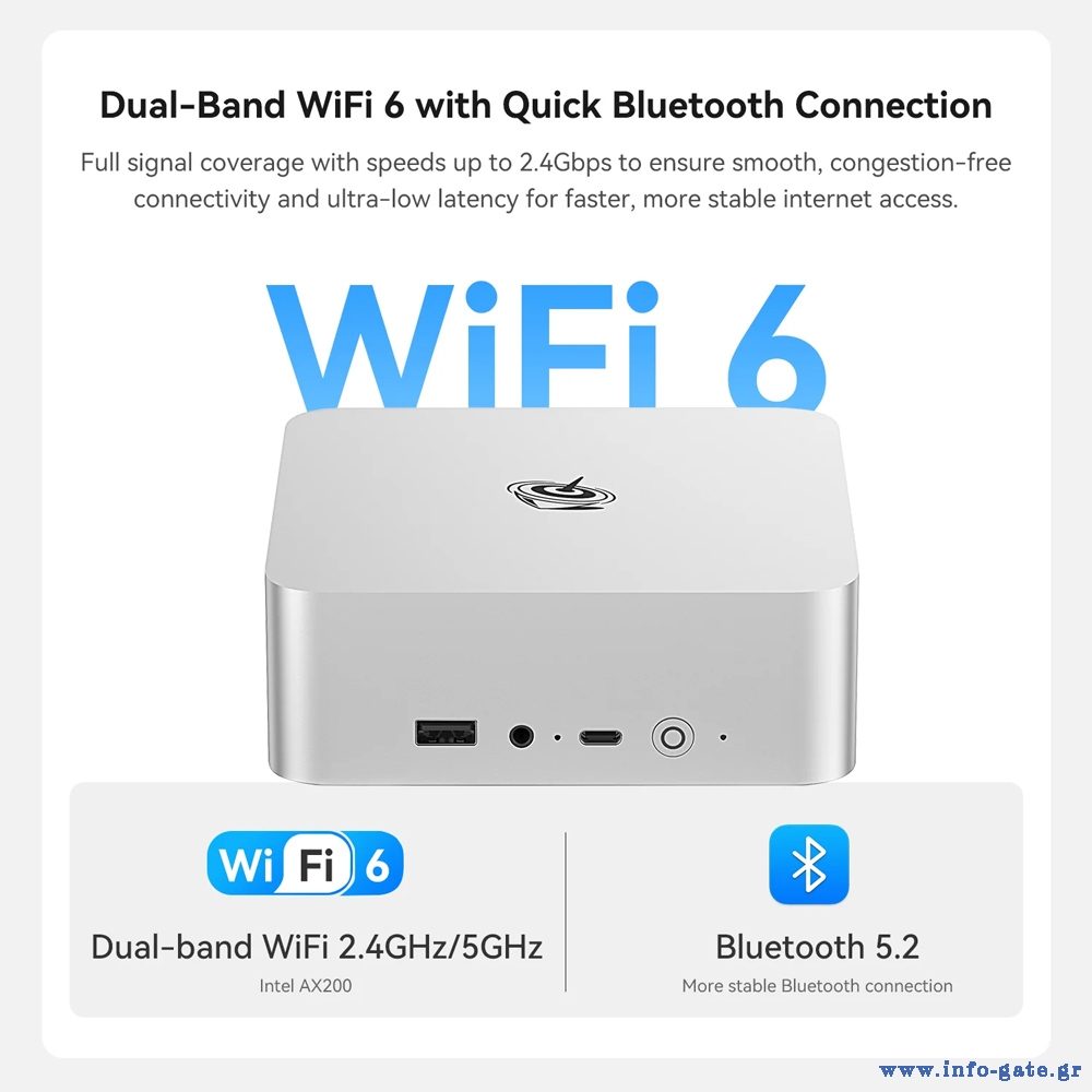 -Δίκτυο: WiFi 6 (Intel AX200), Dual Gigabit Ethernet 1000Mbps