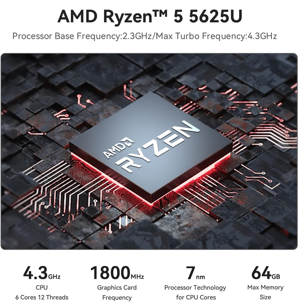 -Επεξεργαστής: AMD Ryzen 5 5625U (Max turbo frequency: 4.3GHz, 6C/12T, 64MB Cache)