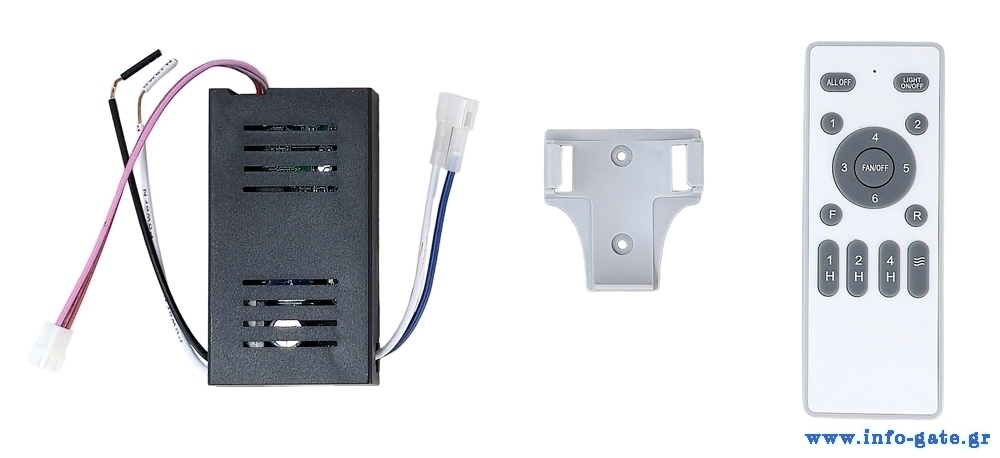 Τηλεχειριστήριο της Powertech, συμβατό με τον ανεμιστήρες οροφής HLL-0147. Υποστηρίζει όλες τις βασικές λειτουργίες για τον έλεγχο του ανεμιστήρα και του φωτισμού.