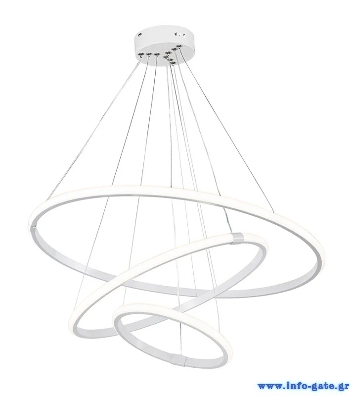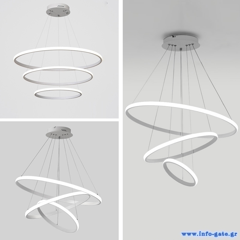 Μοντέρνο LED φωτιστικό οροφής αποτελούμενο από τρεις δακτυλίους με διάμετρο 20cm, 40cm και 60cm και ισχύ 44W.
