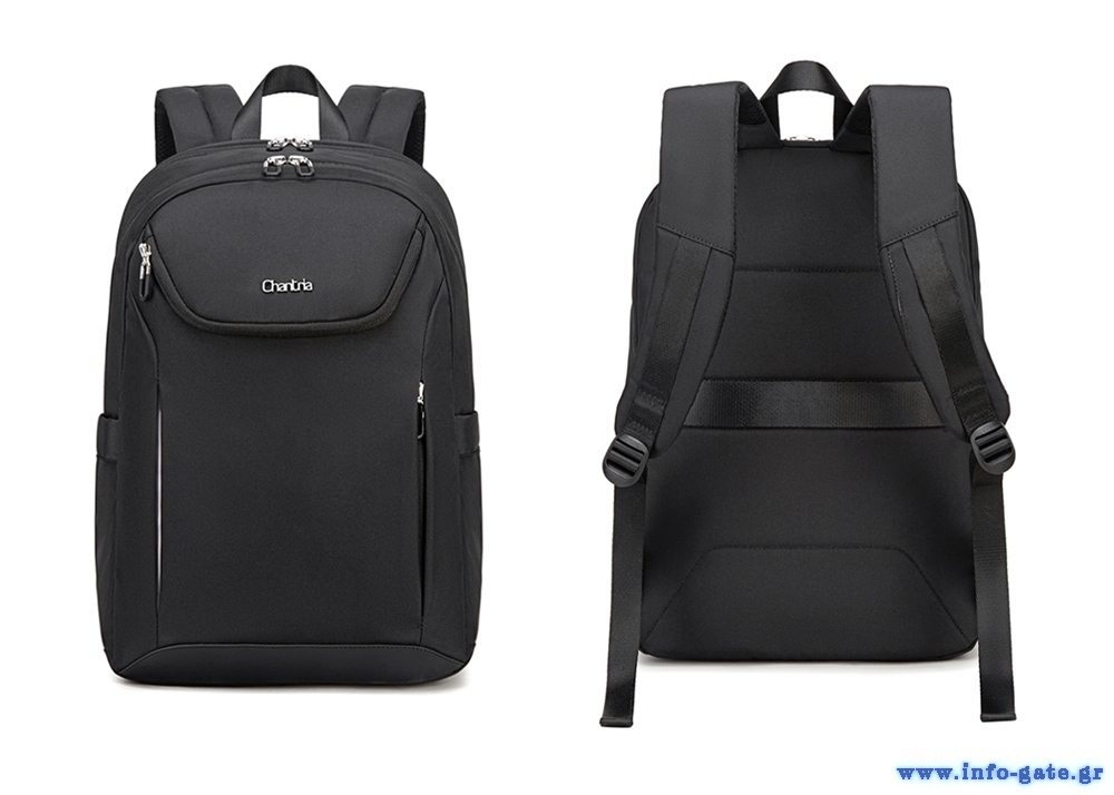 CHANTRIA γυναικεία τσάντα πλάτης CB00638 με θήκη laptop 15.6", 20.2L, μαύρη