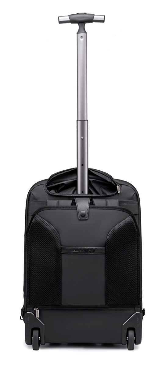 Διαθέτει τροχούς και πτυσσόμενη τηλεσκοπική λαβή που μπορεί να συμπτυχθεί πλήρως μέσα στην τσάντα, προσφέροντας ευκολία στη μεταφορά.