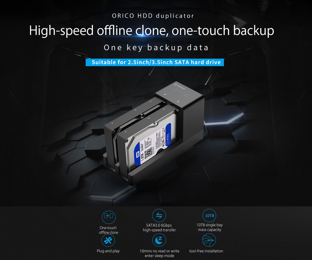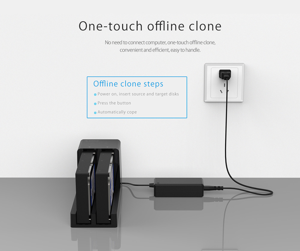 Υποστηρίζει λειτουργία κλωνοποίησης που επιτρέπει την αντιγραφή περιεχομένου από ένα HDD/SSD σε άλλο χωρίς τη χρήση υπολογιστή.