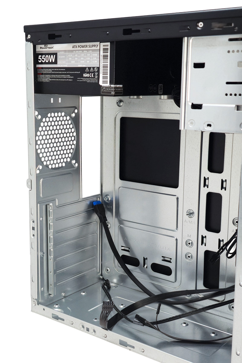 Εξοπλίζεται με προεγκατεστημένο τροφοδοτικό 550W και 120mm ανεμιστήρα. Υποστηρίζει μητρικές τύπου ATX Micro-ATX, ITX και κάρτα γραφικών μήκους έως 310mm.