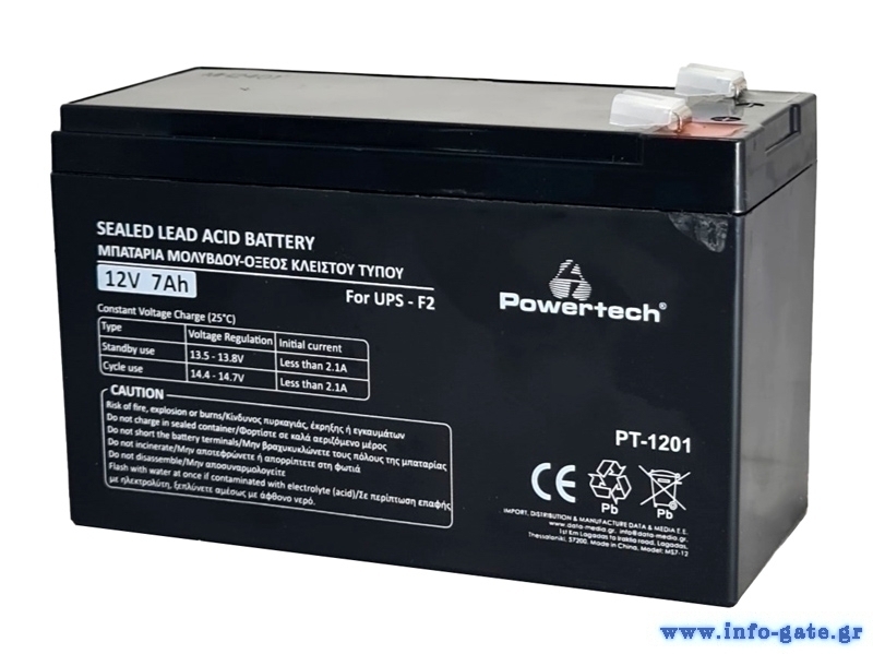 POWERTECH μπαταρία μολύβδου PT-1201 για UPS, 12V 7Ah, F2