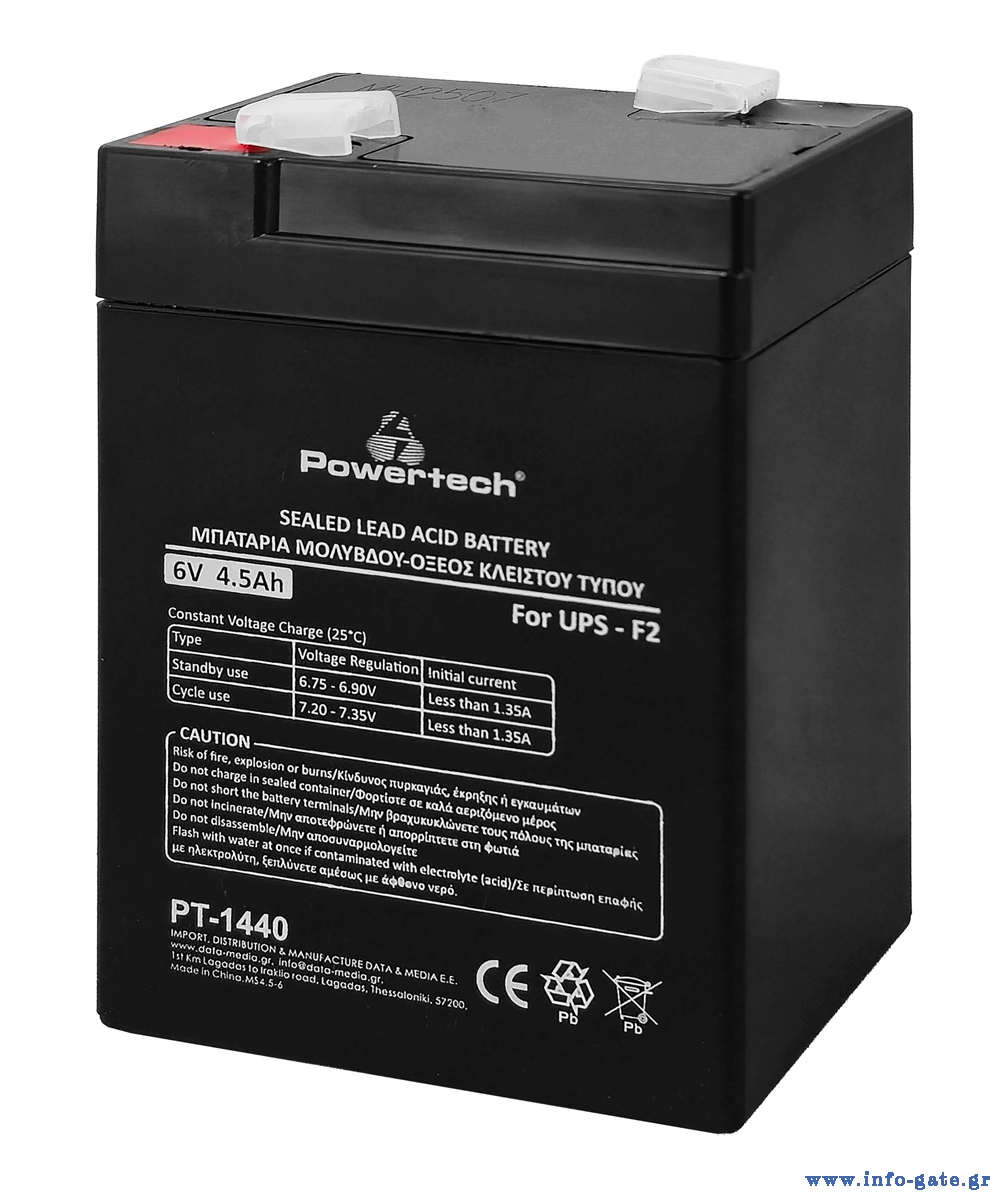 POWERTECH μπαταρία μολύβδου PT-1440 για UPS, 6V 4.5Ah, F2