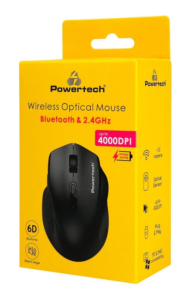 POWERTECH ασύρματο ποντίκι PT-1578, 2.4GHz & Bluetooth, έως 4000DPI, μαύρο
