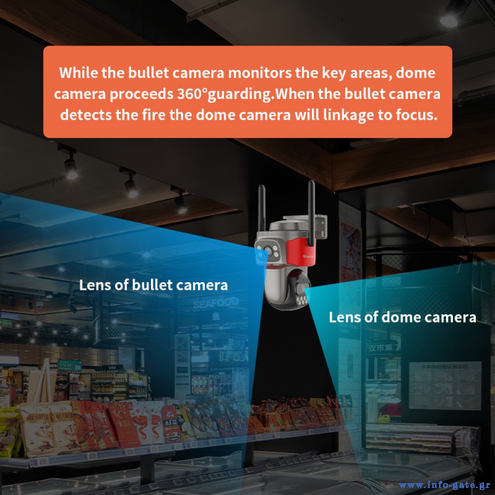VSTARCAM smart κάμερα AF621DR, dual lens, αναγνώριση φωτιάς & καπνού, 2MP, WiFi, SD, PTZ, IP66